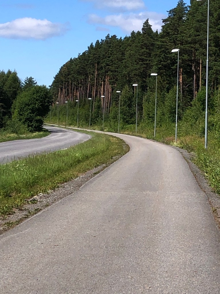 Today’s trail included: urban asphalt, asphalted town trail, dirt and gravel roads, asphalted country roads, wooded mosquito havens, beautiful farmers’ fields. Wind kept the mossies and horse flies away while we were out of the woods. In the woods, the mossies were little, aggressive monsters!