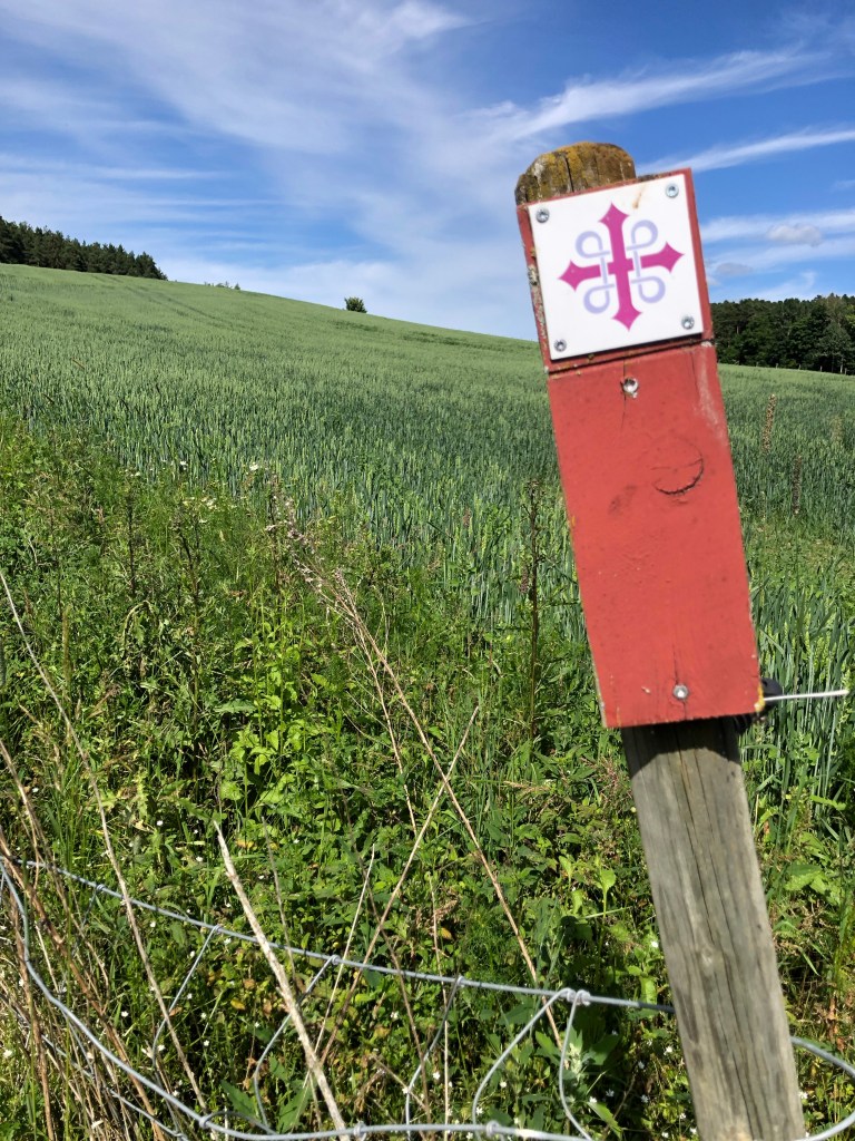 Stopped for another break at 17.8km (Noderhov Kirke). It’s difficult to get going after a break. My body hurts where the backpack presses on my hips and collarbones. Takes about 5mins of walking to feel okay again. Not a lasting pain. Blister still there under the bandaids but not bothersome…just feel it.