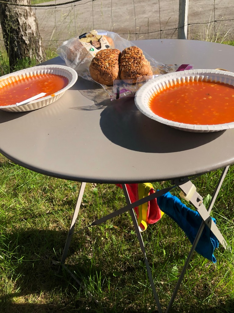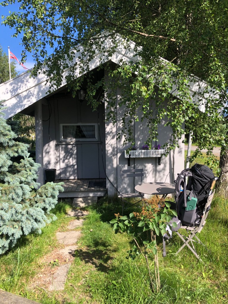 We have a cute little, super basic hut tonight. The property, Lisletta, is owned by Gro and Thor. Very kind and down to Earth. There are horses here too. Beautiful and open space with sun warming us and drying our sweaty socks.