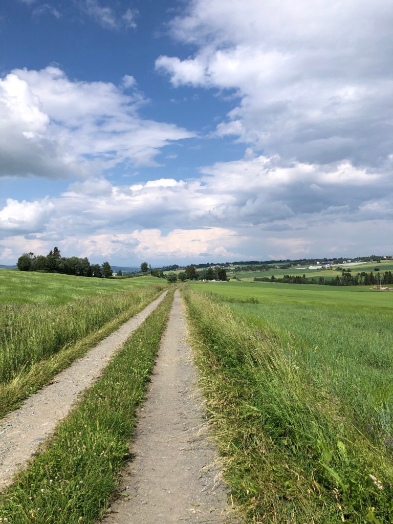 We met two other women on the trail today. One lived near where we began our day and the other took the train from Oslo to join her. They didn’t know how far they’d go, but wanted an adventure. I practiced my Norwegian again, listening mostly, but I also got a few responses and questions in too. I didn’t always understand the response though. But I learned that barley is bygg in Norwegian; we passed many barley fields today. It is such a beautiful plant, especially in the breezes.