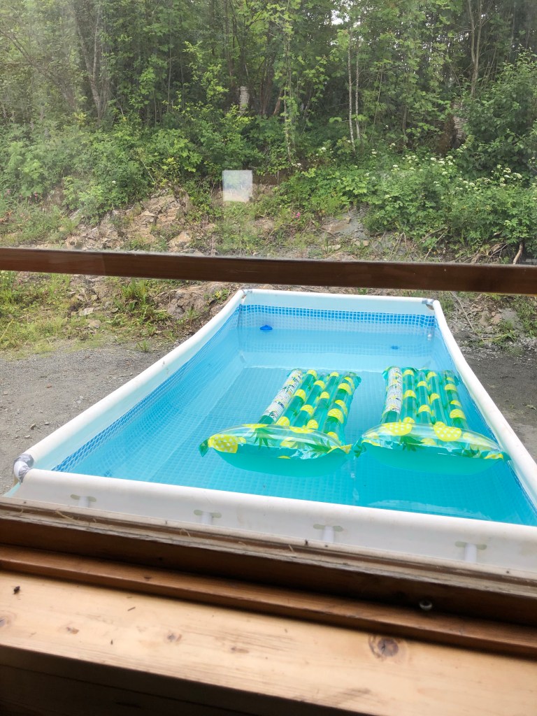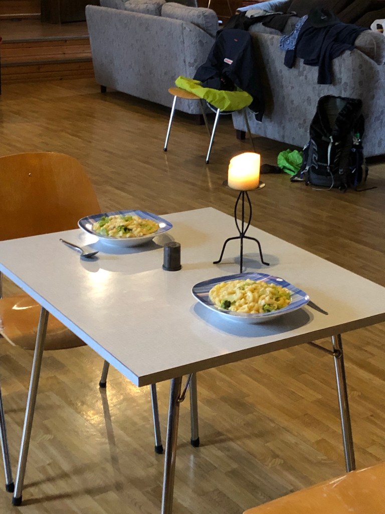 We arrived at our home for the evening, which is a church hall. We have the place to ourselves, and while it doesn’t have showers, we have a huge open room for dancing. We also have a kitchen and toilet/sink. All that we need, once again, including a pool! Chin-Yu whipped up a magical meal from dried food that the church hall had available for us, and I’m really grateful she carried the broccoli that I said we didn’t need when we bought groceries yesterday morning.