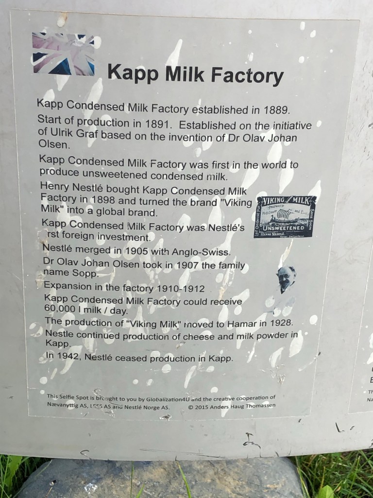 Start: 9:05 from Kapp. The place we stayed last night used to be the home for the leadership of a condensed milk factory, which we passed this morning. Beautiful brick buildings.