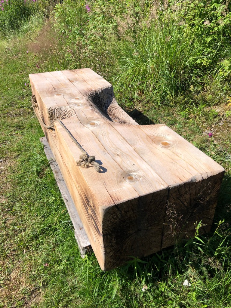 14.5 km needing a break and feeling it. We conjured up a bench to sit down on and relax.