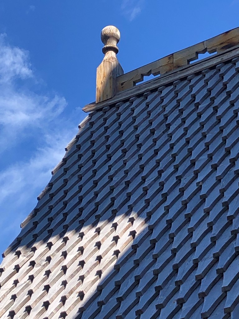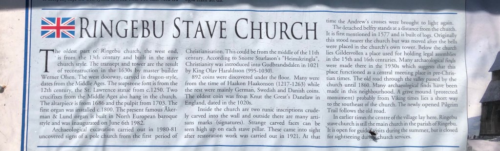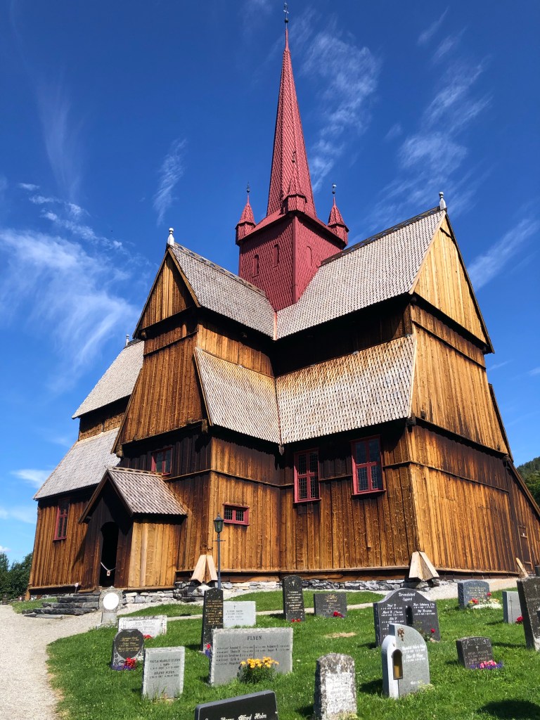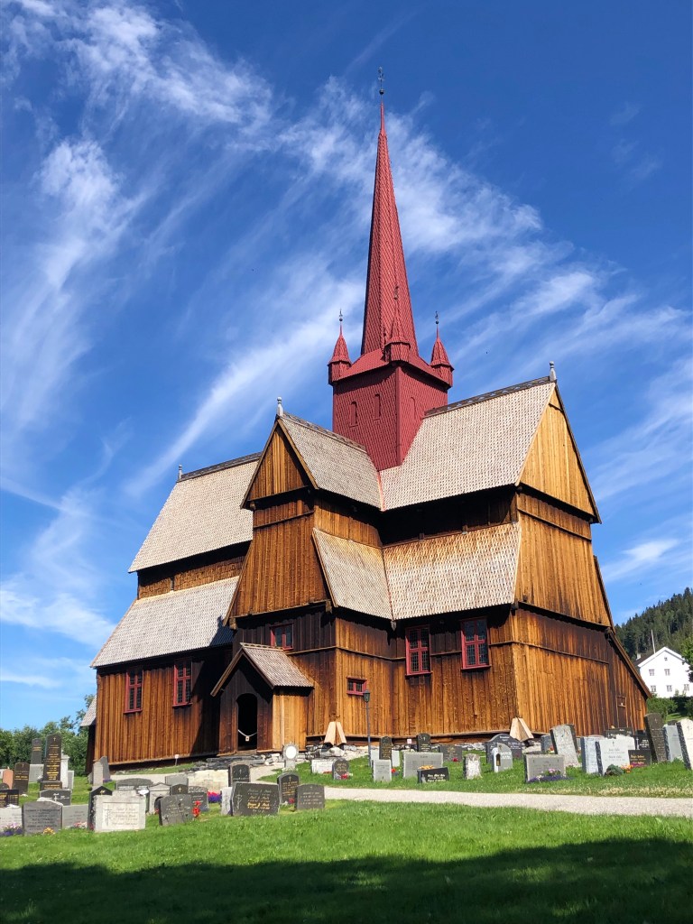 8.5 km We visited a stavkirke. The smell of the wood in the sun was amazing!! The door to the church was incredible!