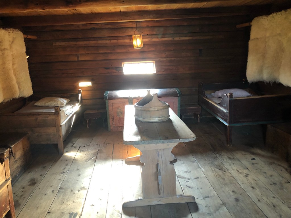 There are newer rooms but we are in the pilgrim’s cabin, an original building apparently built 700 years ago.