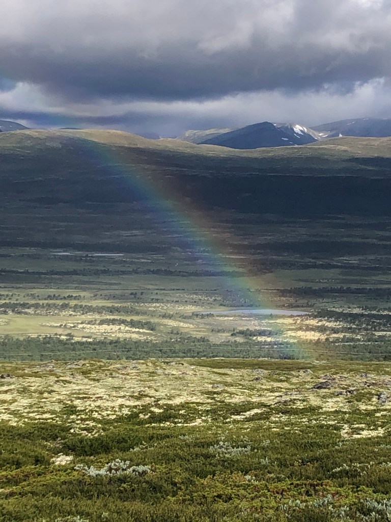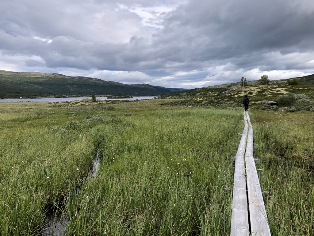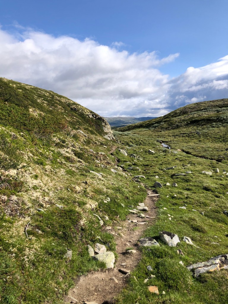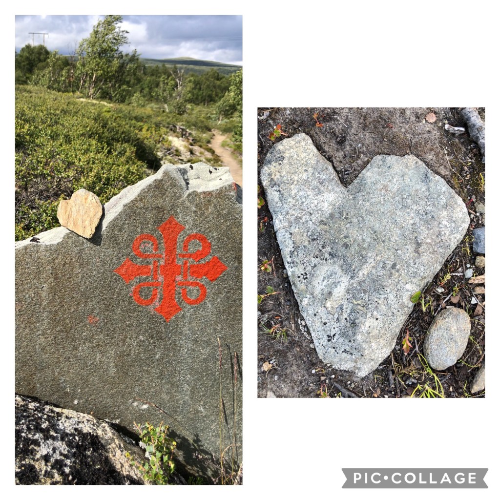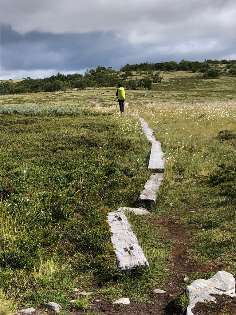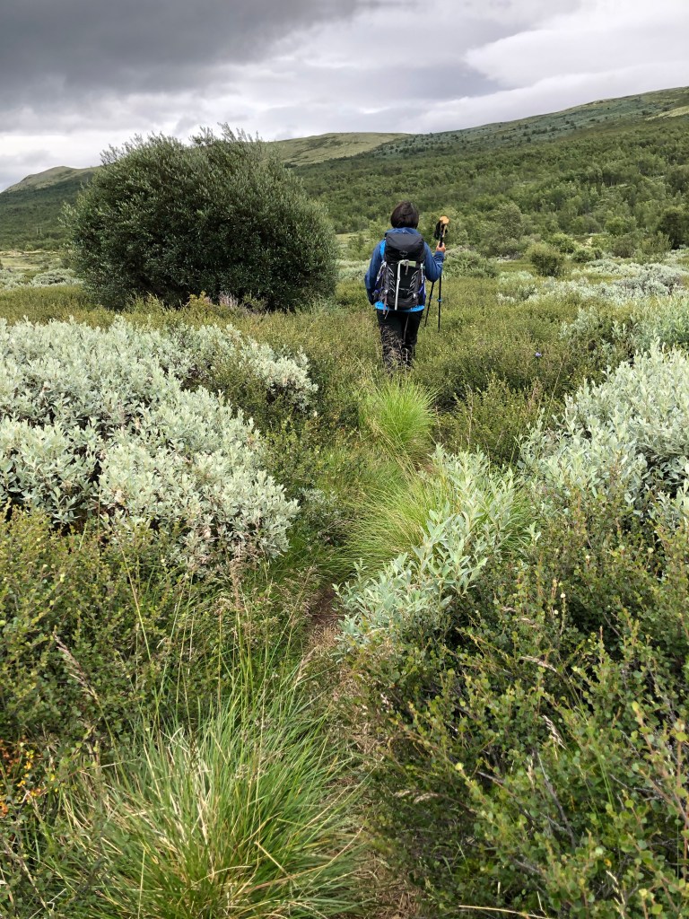 “Årestua had a fireplace inside by the wall to cook, and one in the middle of the room for light and heat. In this site, archaeologists in the 1980s found the largest coin find made in Norwegian mountains, here they found half-finished chambers made of bones from reindeer. Here they found bones from over 20 different fish species, most of them saltwater fish. There has been a lot of activity in this place in the Middle Ages, both by hunters, pilgrims and other travelers – until the place was laid waste after the Black Death in 1349” (pilegrimsleden.no)The final stretchReady!!Ellen, a Norwegian woman who is friends with my Jasper family, and who I met in Jasper, came to say hi!