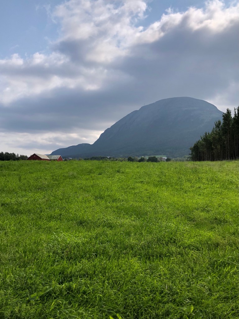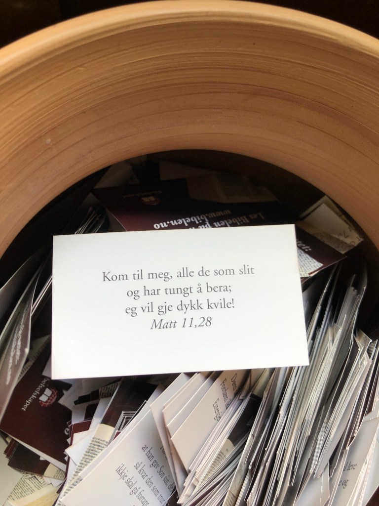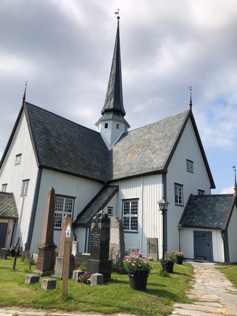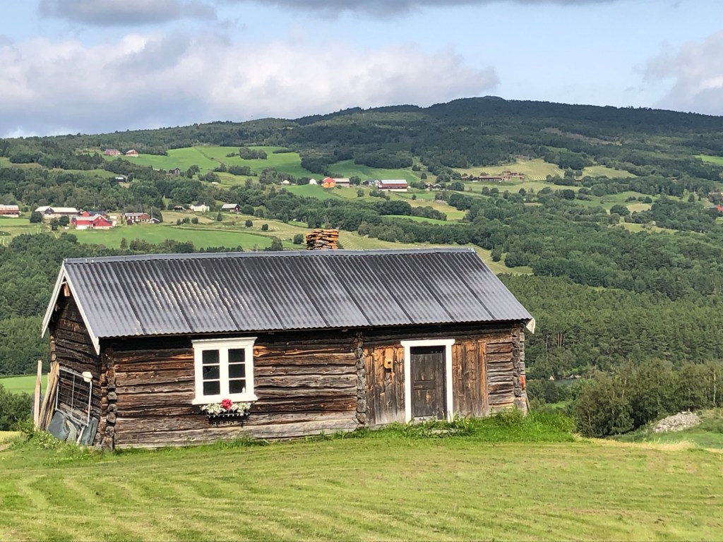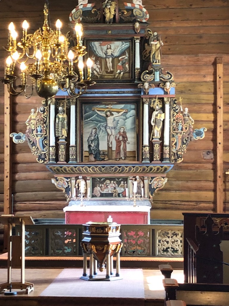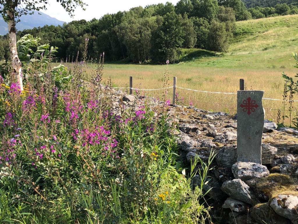 After a long climb uphill, and passing Vang, the largest Viking Age burial site in Northern Europe, we arrived at Oppdal kirke at 12:40ish. It’s lovely inside with a lot of wood based ornaments. The smell of wood welcomes you into the church. Chin-Yu has been sitting in the church for awhile when I arrive. There is another milestone; 153 km left.