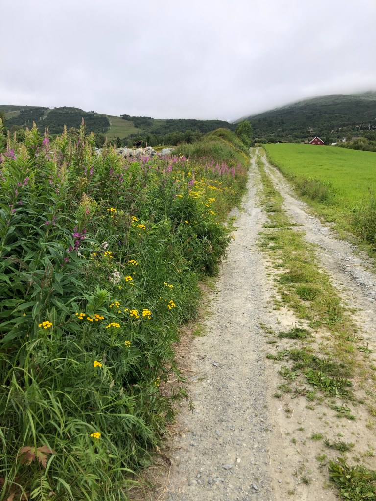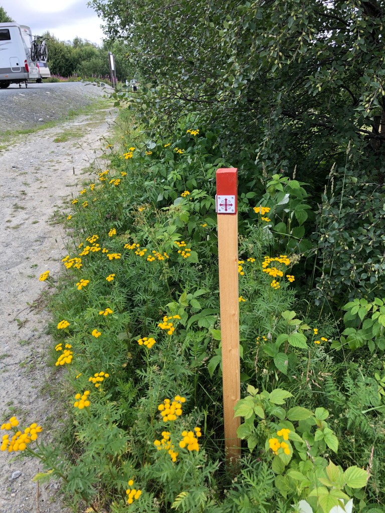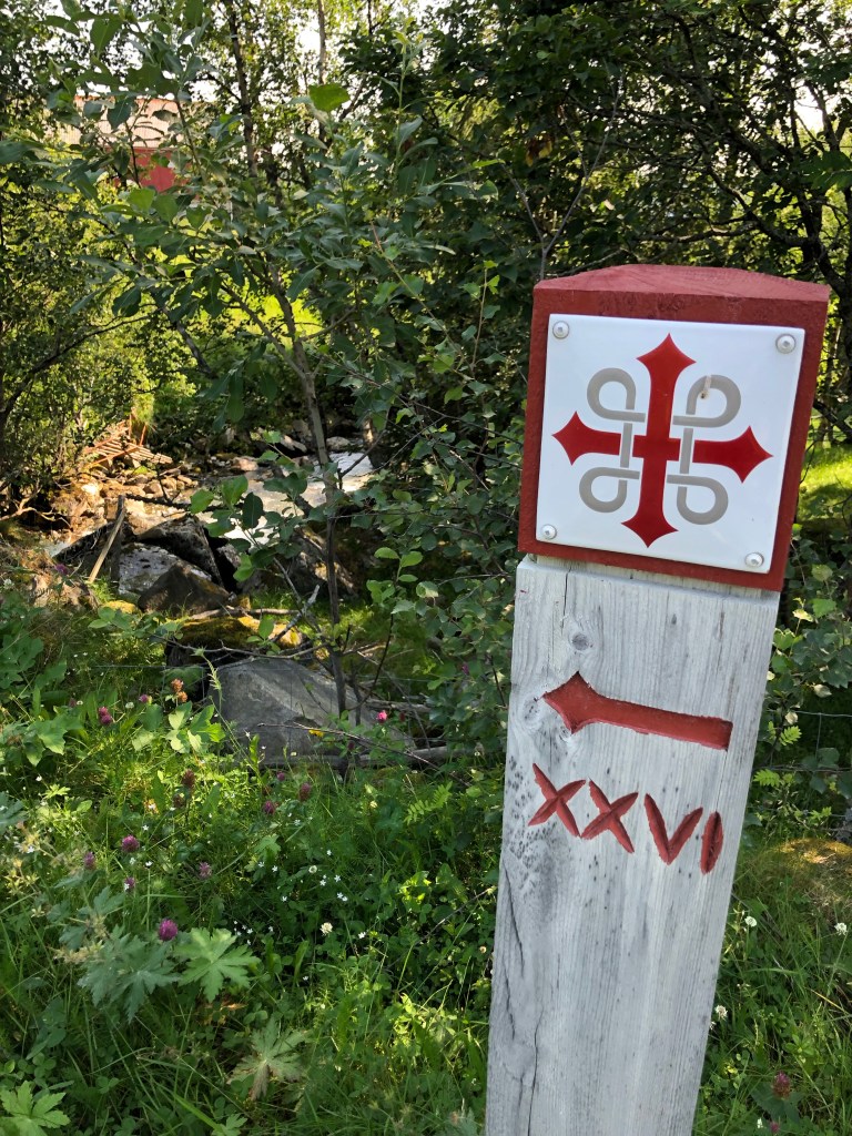 I felt full of great food and the magic of the Universe for the next 8 km, and at 16.8 km, I found a big rock to sit on for a break. While sitting there, I met a group of five Norwegians and spoke to them på norsk. They were very patient with me and I felt a little proud that I embarrassed myself. They will also arrive in Trondheim on the 29th for the celebrations.