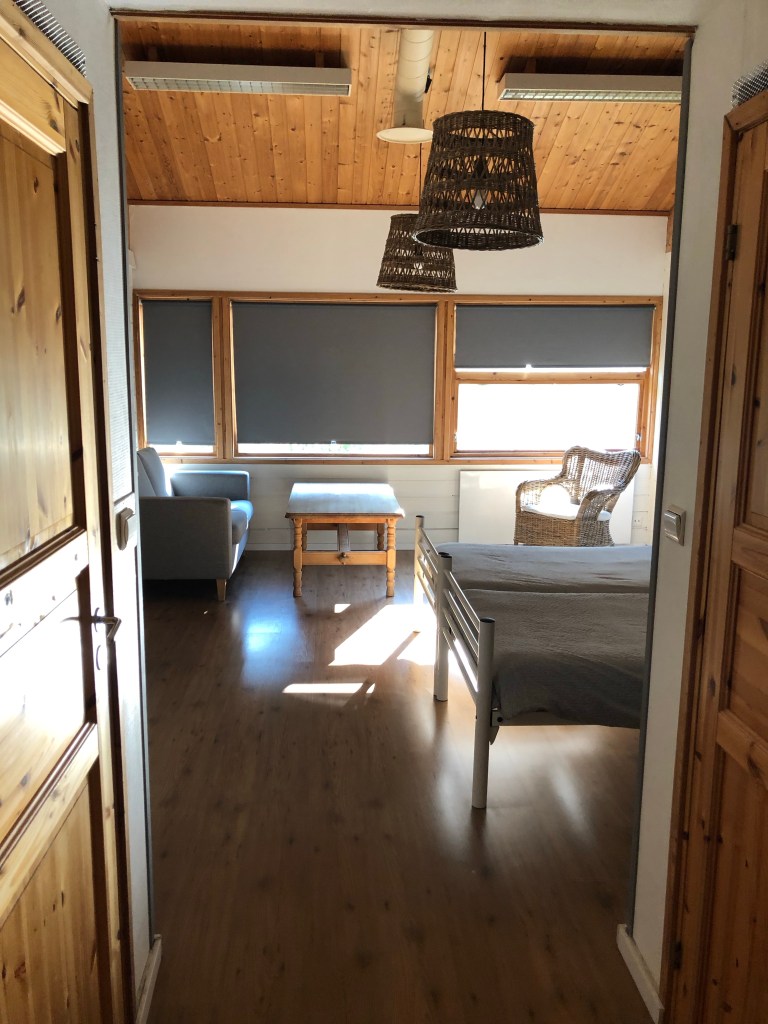 The building is an old school that has been/is being renovated into a guest house. The rooms are spacious, light and clean, with both a shower and a toilet with their own doors in each room! It would be a lovely spot for a writers’ or other retreat.