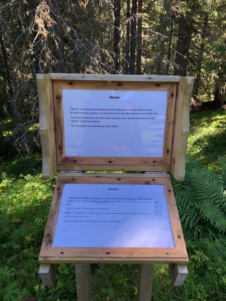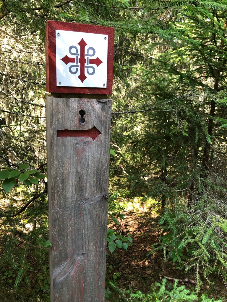 “Pilgrimage means a “stranger who walks to a holy place.” The motives for the pilgrimages were probably more penance, healing, thanksgiving or simply a desire for adventure. Sacred places are known in all religions and some of them are still relevant destinations. The most important target for pilgrimage in the Nordic countries in the Middle Ages was the Christ Church in Nidaros, where the casket with the remains of Olav the Saint was kept. The pilgrimage began in the middle of the 12th century and had great support, but after the Reformation in 1537 it was considered an idolatry and the traffic stopped. Today, most visible traces of the pilgrims have been erased” (sign at 10 km).