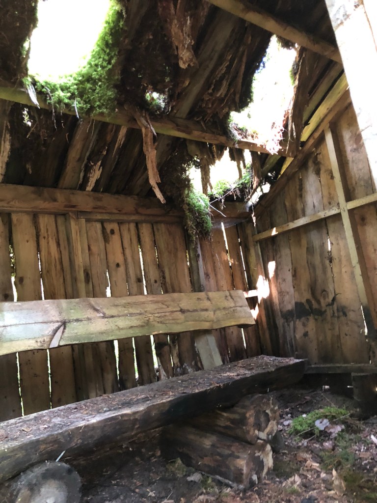 There are little wooden story boxes along the trail that tell about the people who farmed the land here, or plants or wildlife. One box suggested that a fella who settled some land was a sorcerer…you’d have to be a sorcerer to live up there…what did they eat so far away from everything? What did they grow in a place full of trees?