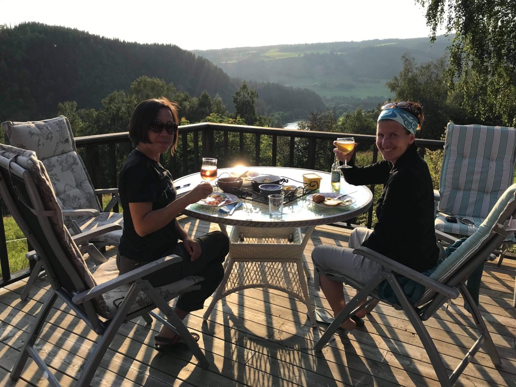 7.5 km-ish: A bit steeper down of a forest section than it looks on the map. Easier in good weather. We’ve been so fortunate with the weather!