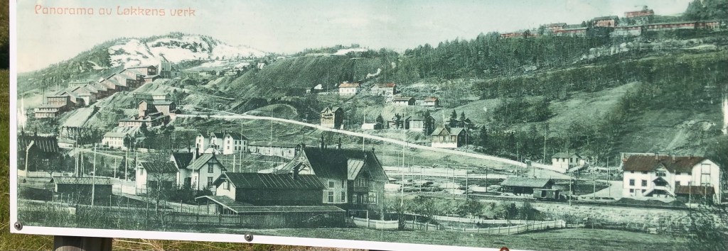 A photo of Løkken Verk from a trail side poster.