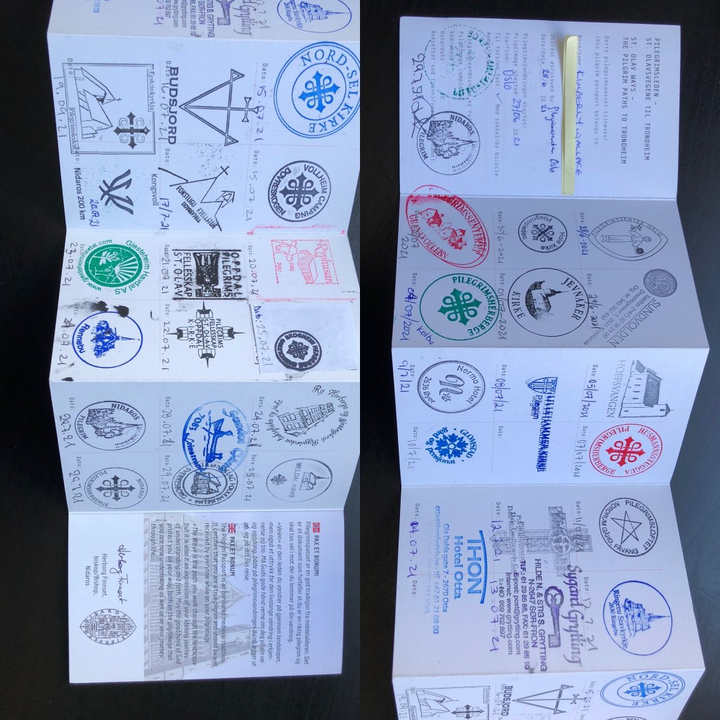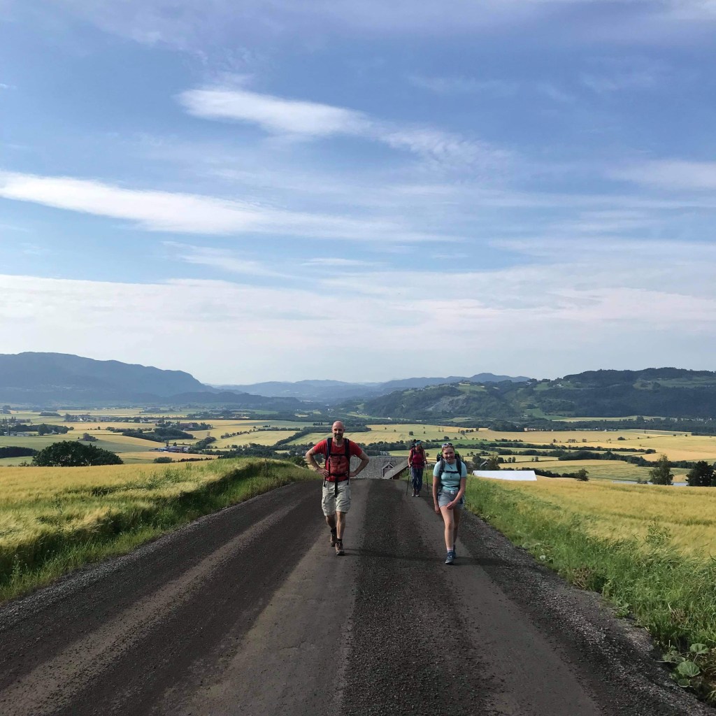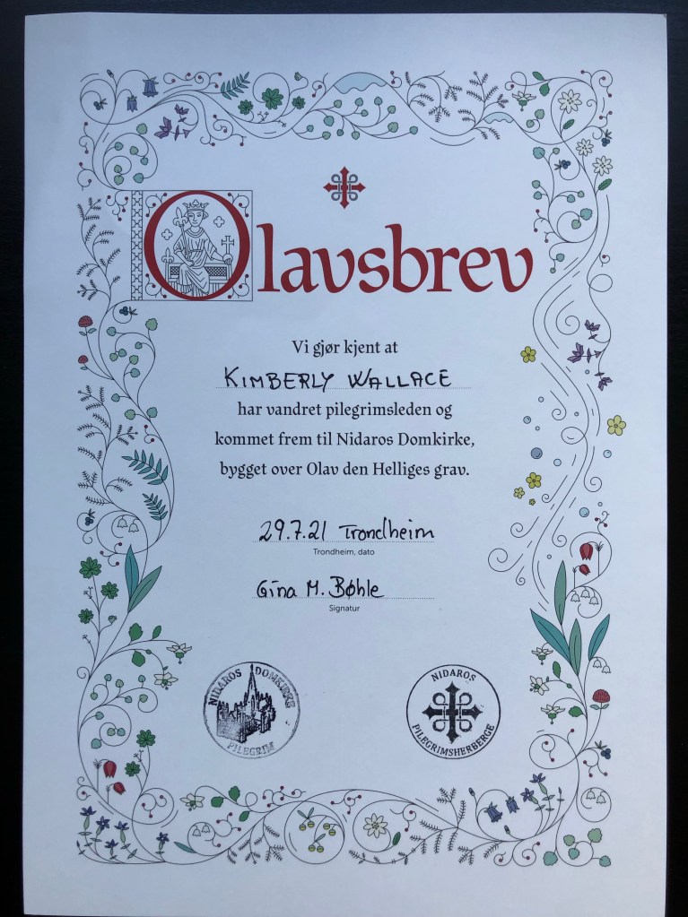 There, we saw several people we’d seen throughout the month and who had also come for the Olavsfesten celebrations. A group of German women we had seen a few times in Dovre called out a hello to us, as well as one of the pilgrims we’d met and chatted with at Sundet the evening before. It felt a bit sad not to hug or shake hands with people I’d experienced parts of this huge walk with, but these are Corona times.