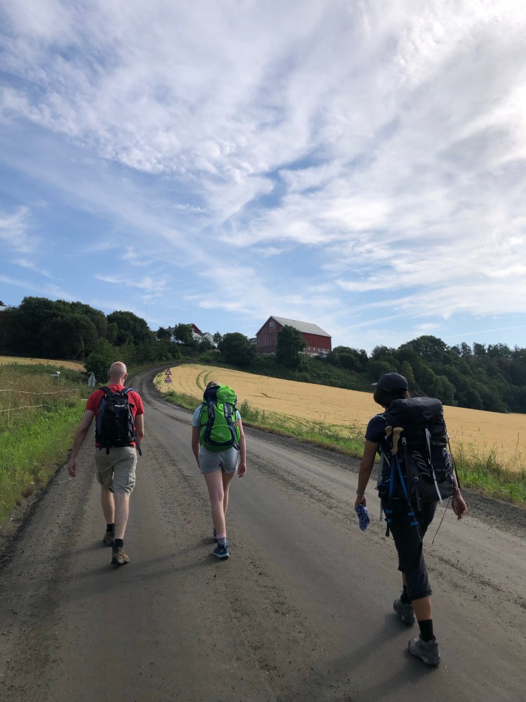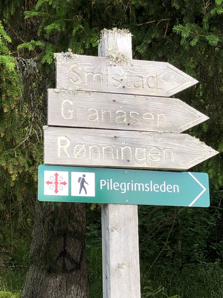 I reflected on the times I’d walked or skied in the area at Lian, including one time with my mom. I had taken note then of the pilgrim trail signs before, but had no inkling at the time that I would one day be following the same signs all the way from Oslo.