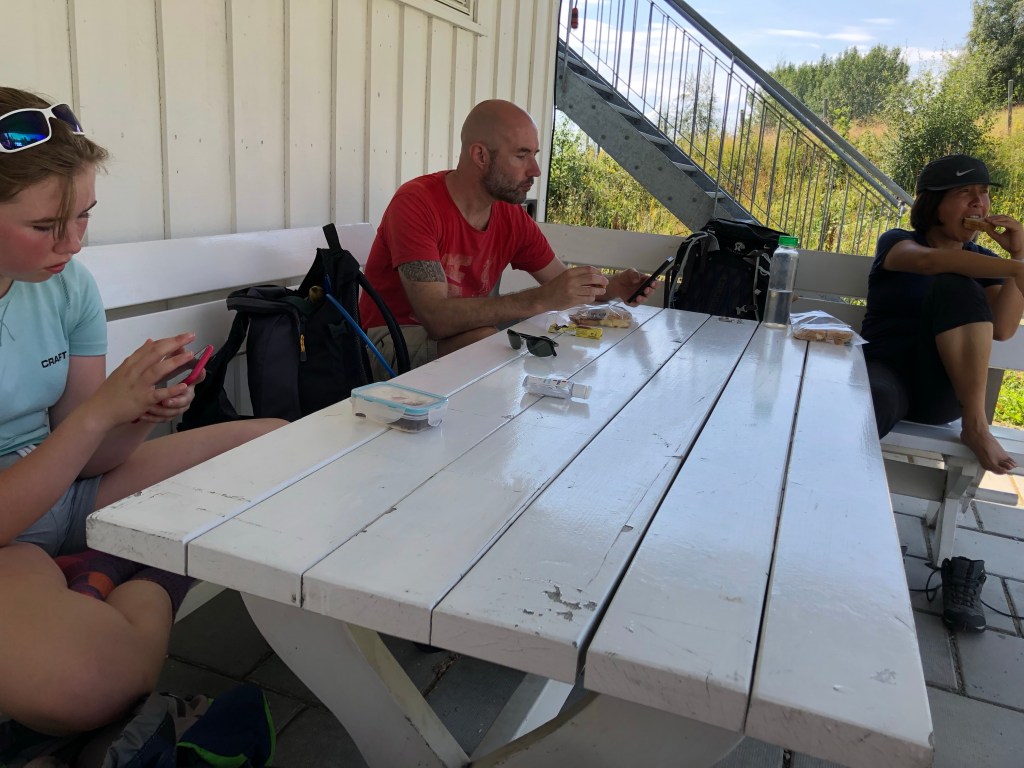At 13.9 km, we stopped at Sverresborg. While we didn’t invest any time exploring what is one of Norway’s largest cultural history museums, we did very much enjoy our ice-cream and toilet break there.