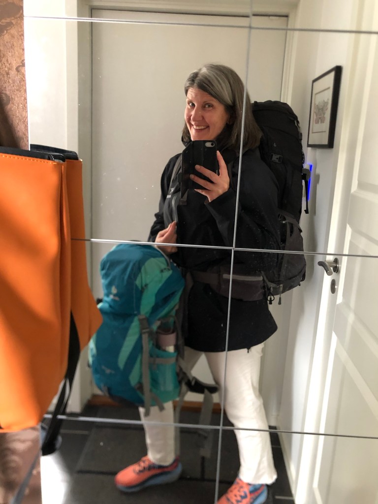 I’m on my way. Me and my two bags. I’m feeling, ever so slightly, as though I am carrying too much. Always carrying too much baggage. Chin-Yu would make fun of me, for sure. At the last minute, I wondered if I should take a rolling suitcase plus my day pack, rather than two backpacks (we are staying at three different accommodation hubs along the path and travelling to and from between the trail start and finish and hotel/apartment each day). I decided it was too late to reorganise my big backpack into a suitcase, and I will make do with what I have. I will learn if it is a poor choice, and I aim to be content either way.