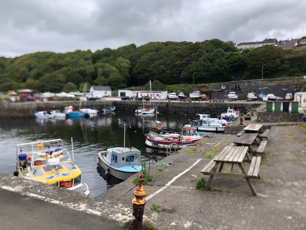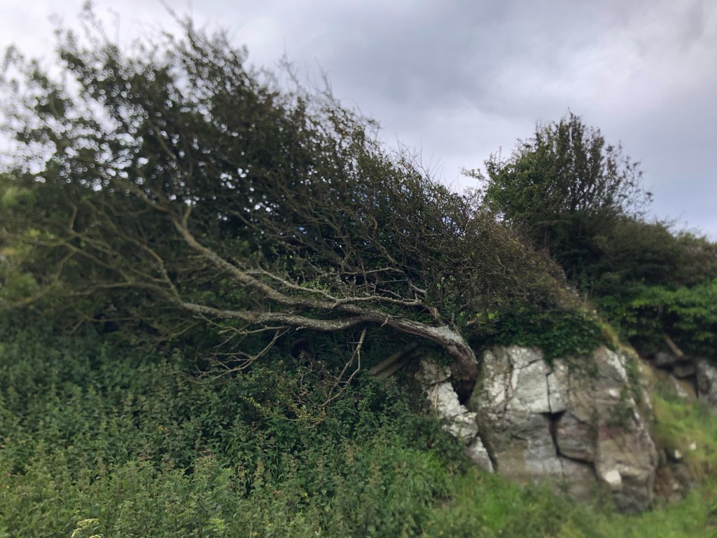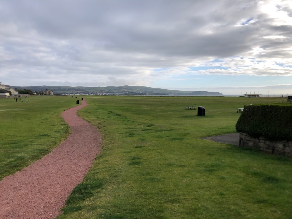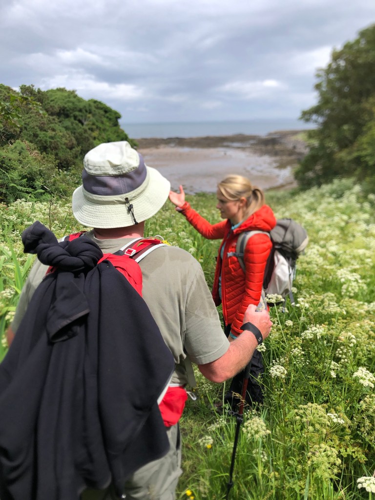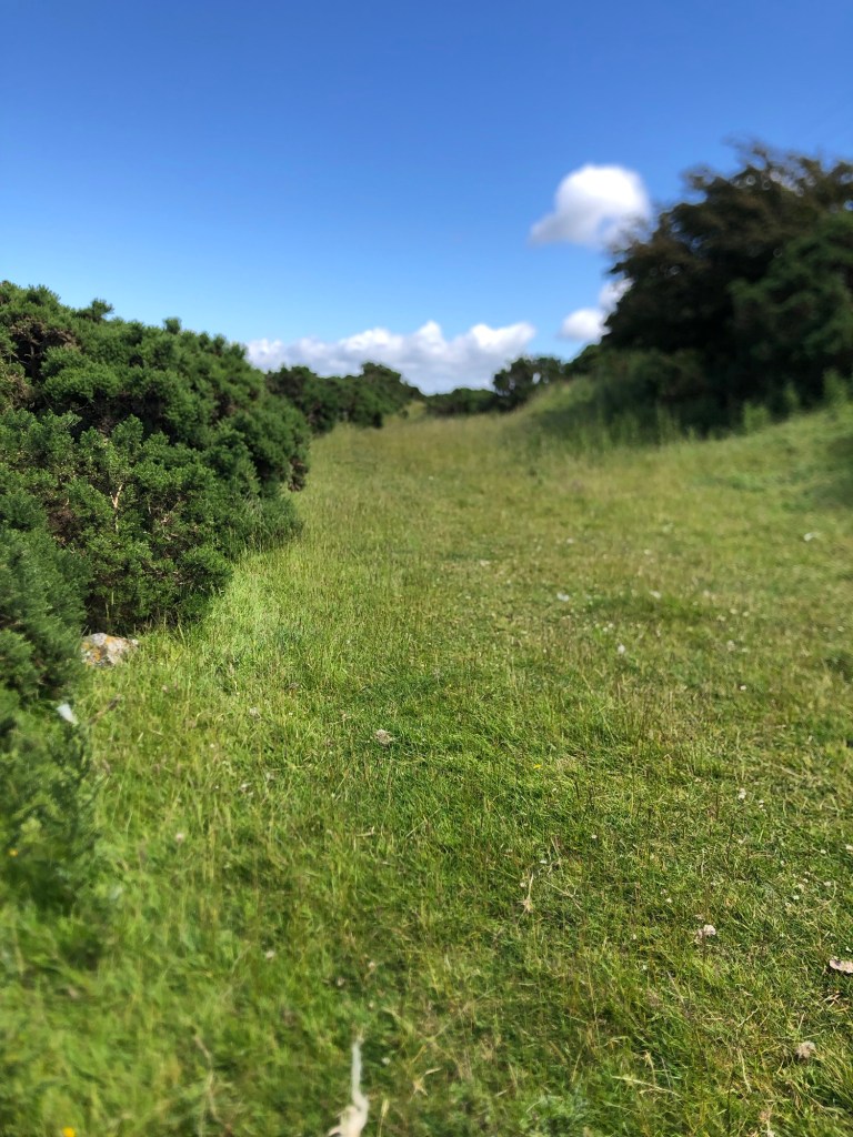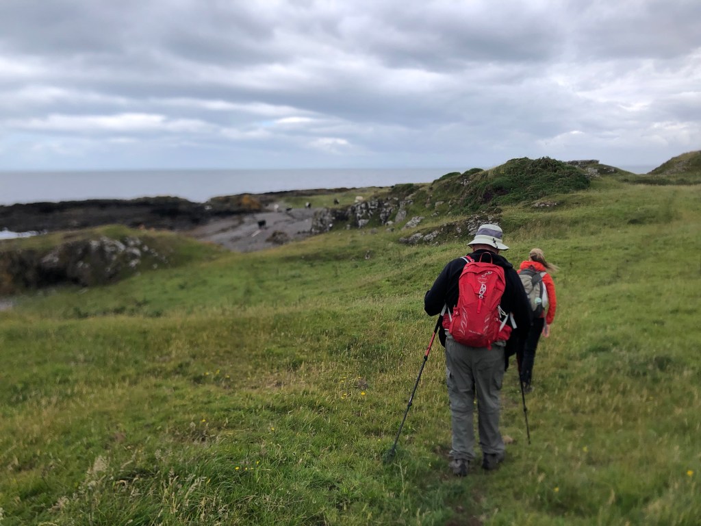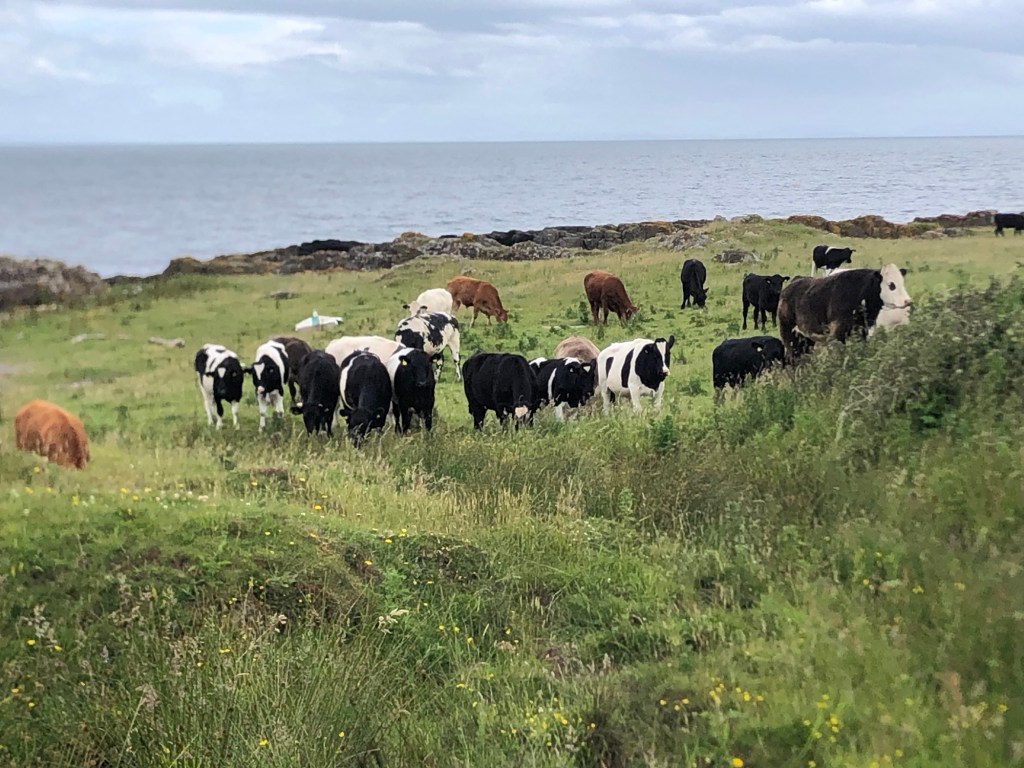 The inhabitants of the castle kept pigeons in this structure (doocot) for meat and eggs. There is an entrance on the other side.Limekiln. Dunure HarbourApparently, there are agates on these beaches! Imagine how long I could spend searching!Damn. The cows. Gah! First ones not behind a fence.Gillian was super brave and began to walk through them. Maybe if we had stuck together, they would have moved away from us? The coos held their ground though, as Dad and I hesitated, and we all backed up and went around another way. Coos 1, Humans 0.Gillian explaining the hard work the Ayrshire Coastal Path’s volunteers have done. So much gratitude to them all. They’ve facilitated a spectacular experience, and with continued support to maintain it, the trail has potential to attract walkers of all ages from around the world.Some bins for plastic found along the shoreline. There is a lot. It would be nice to know where they reside so intentional collection can occur. People have to use them as plastic bins though, not garbage bins, or the volunteers can’t continue to provide the service.Resilience Plastic and other trash that people have buried under the ground is beginning to seep out of the cliff side. Reminds me of “He-y, Come on Ou-t!” by Shinichi Hoshi.Our lunch view. There’s a perfect grass bench at the top of the stairs. The ACP follows an old railway path at this point. Easy walking!Spectacular. We walked behind these fields to the right of this shot, and through the red and far green fields, then down to the beach, and around the head in the distance.A field of broad beans.Hogweed (Cow Parsnip)GeraniumDown to the beach.My kind of beach!Coolest formations (photo credit: Gillian)We heard and then saw four peregrine falcons around this point. Maybe they were fledging? They looked like they were having fun on the wind currents.So many patterns.And more patterns.Heads of Ayr is behind us now. Tide is waaaay out!Greenan Castle, another Kennedy tower house from 1600s. Those Kennedys have some stories about their land acquisitions.Off the beach and up to the long esplanade as we enter Ayr.Marker for a bike path.So much green.