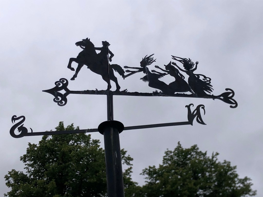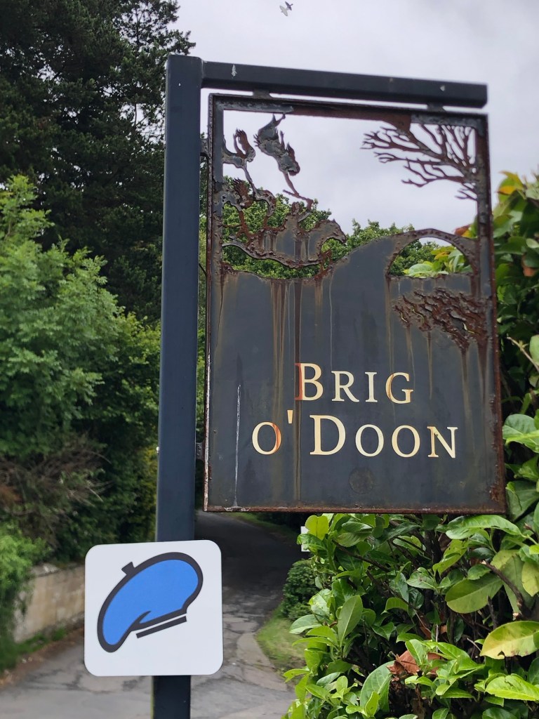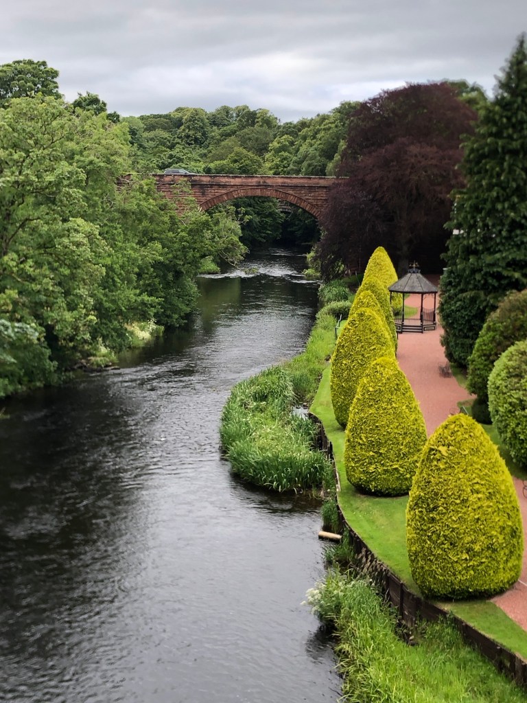 Before the museum, we went to get get groceries in Wallacetown. Fun!Maybe a little Freemason magic to help the poet’s success?Gillian told us about Tam o’Shanter, and the “wet cheese” (witches, with a Scottish accent 😂) who, “a running stream they dare na cross.” River DoonOne of the wet cheese at Brig o’Doon.Alloway Parish ChurchWallace Tower